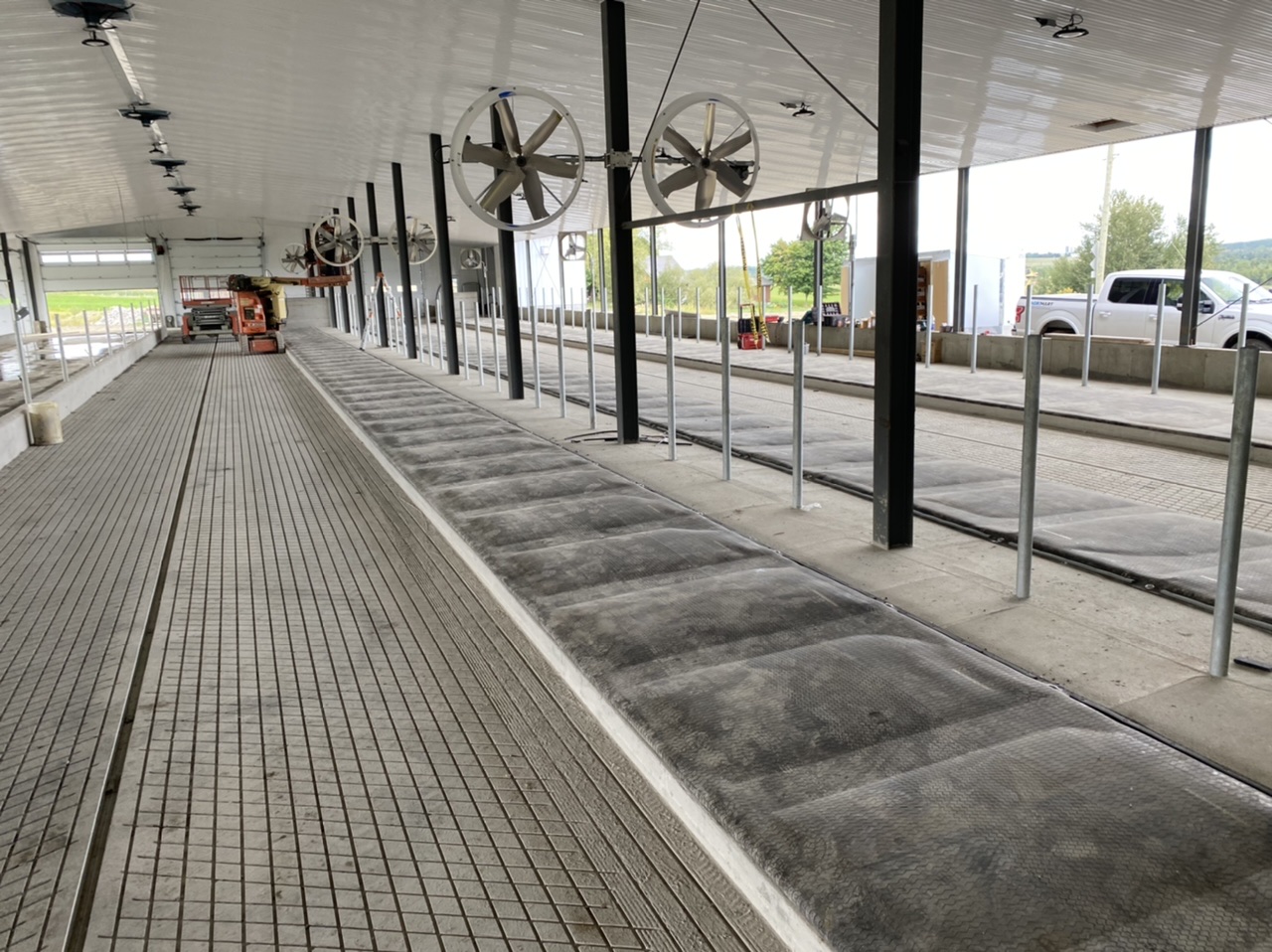 Installation de matelas Aquastar avec tapis de 1 1/4 d’épais pour les taures